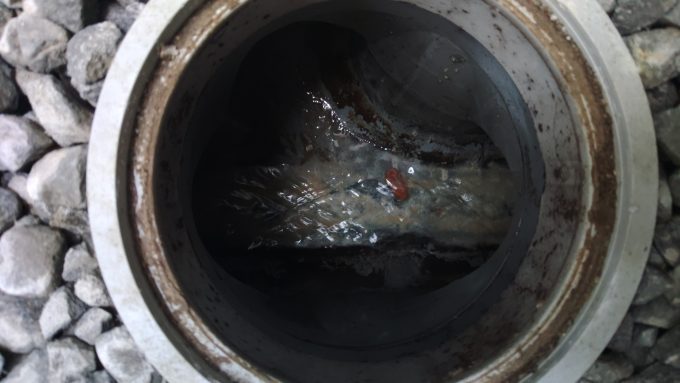排水のにおいについては個人的に気になりませんでしたが、排水周りを点検させていただいたところ、キッチンの経路の排水桝が油でかなり汚れていました。