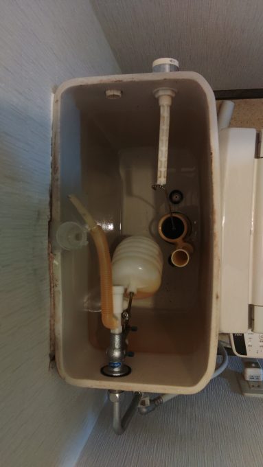 お客様に現状をご説明し部品を確認しましたが、修部品の供給が終了してしまっている状況で、本来であればトイレ交換がベストですが、ちょうど汎用品が在庫にあったため、部品修理のご提案をさせていただきました。純正部品ではありませんが汎用品が取り付け可能なトイレだったため、今回は部品修理対応をさせていただきました。
